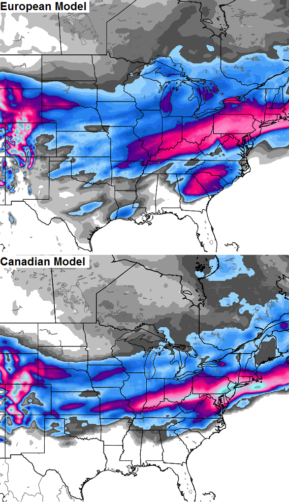 If we look at the next 10 days, we find a couple of the more reliable models putting the worst of the winter weather right on top of our region…