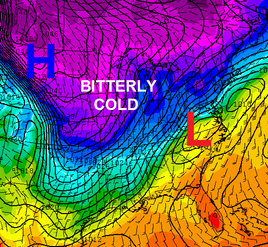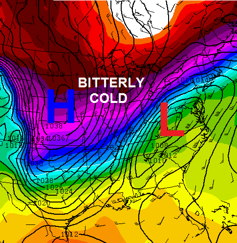 A blast of bitterly cold air will follow that up for the middle of next week and could deliver one heck of a shot of cold air for the heart of winter, let alone March.