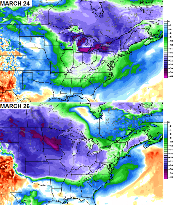 This is shaping up to be a rather ugly spring for much of the country. Flakes in April are a strong possibility if this pattern continues. Wonder what all those “winters over” forecasters are thinking to themselves right now? 😉 They were telling you it was over before it got started… and not it won’t stop.