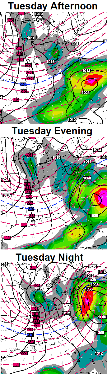 I think the best chance for the wintry weather will be across the southern half of the state. The next winter weather threat comes Tuesday as an even colder shot of air dives in from the northwest as a storm develops to our south. The European Model continues to develop one heck of a storm that rides up the east coast…